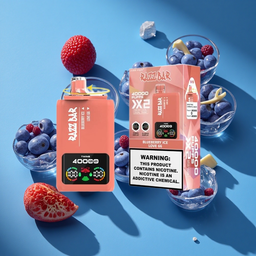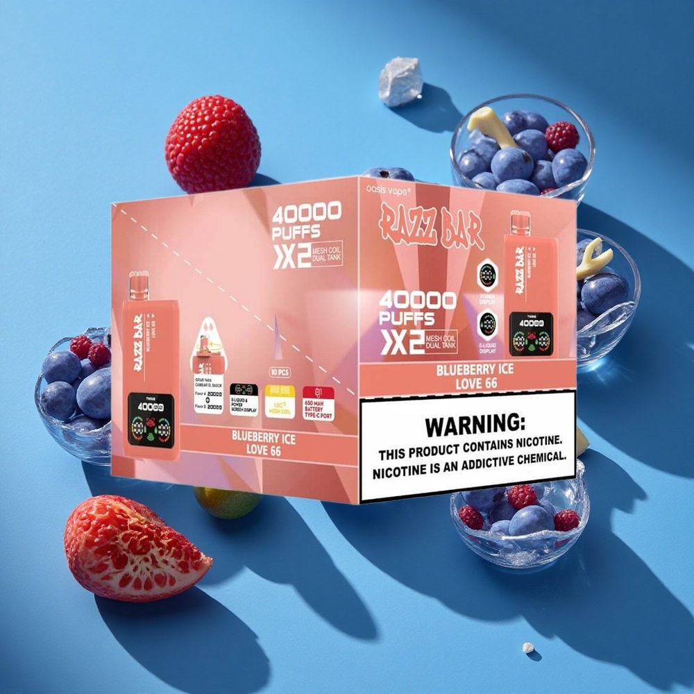 Razz Bar 40000 Puffs Eldobható E-cigaretta Áfonya Jég Love 66, 1.0 Ohm 2 Mesh Coil, 650 Mah Battery Type-C Port