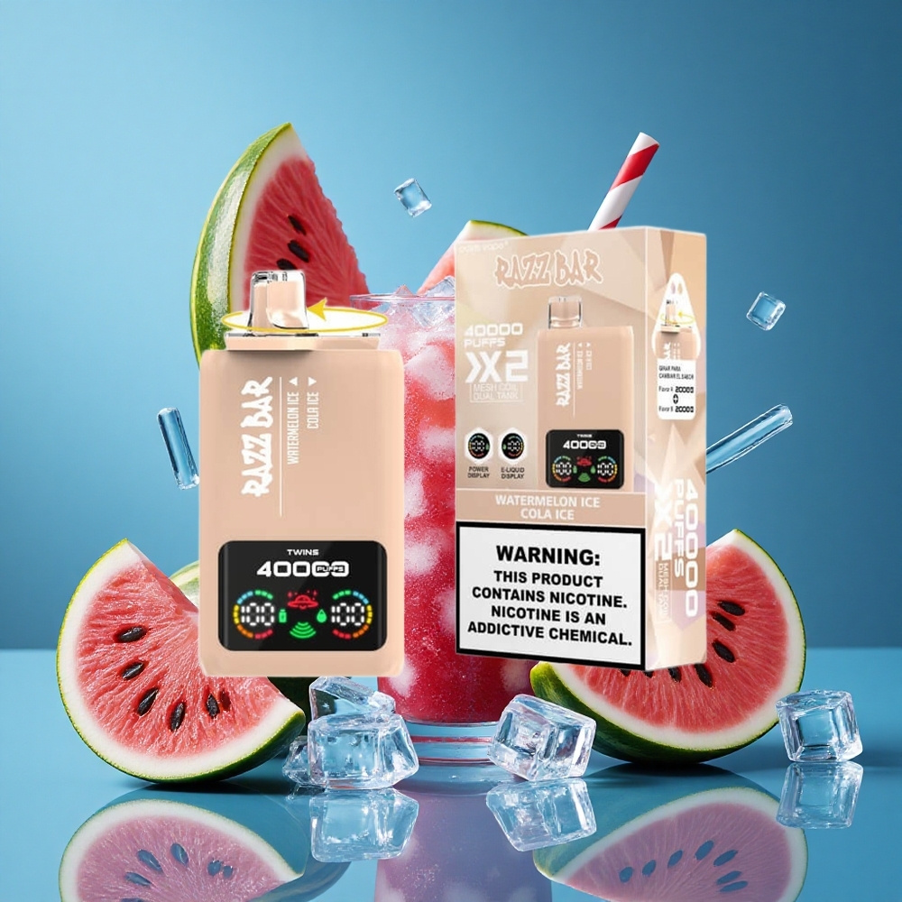 Razz Bar 40000 Puffs Eldobható vape Vegyesbogyó_Görögdinnye Jég 1.0Ohm 2 Mesh Coil és Power Screen Display - 20 mg/ml