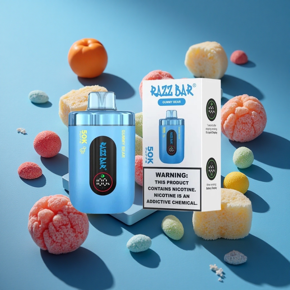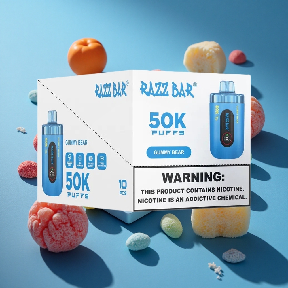 Razz Bar 50K Puffs Eldobható E-cigaretta Málna Medve íz, 50000 Puffs, 650 mAh Akku